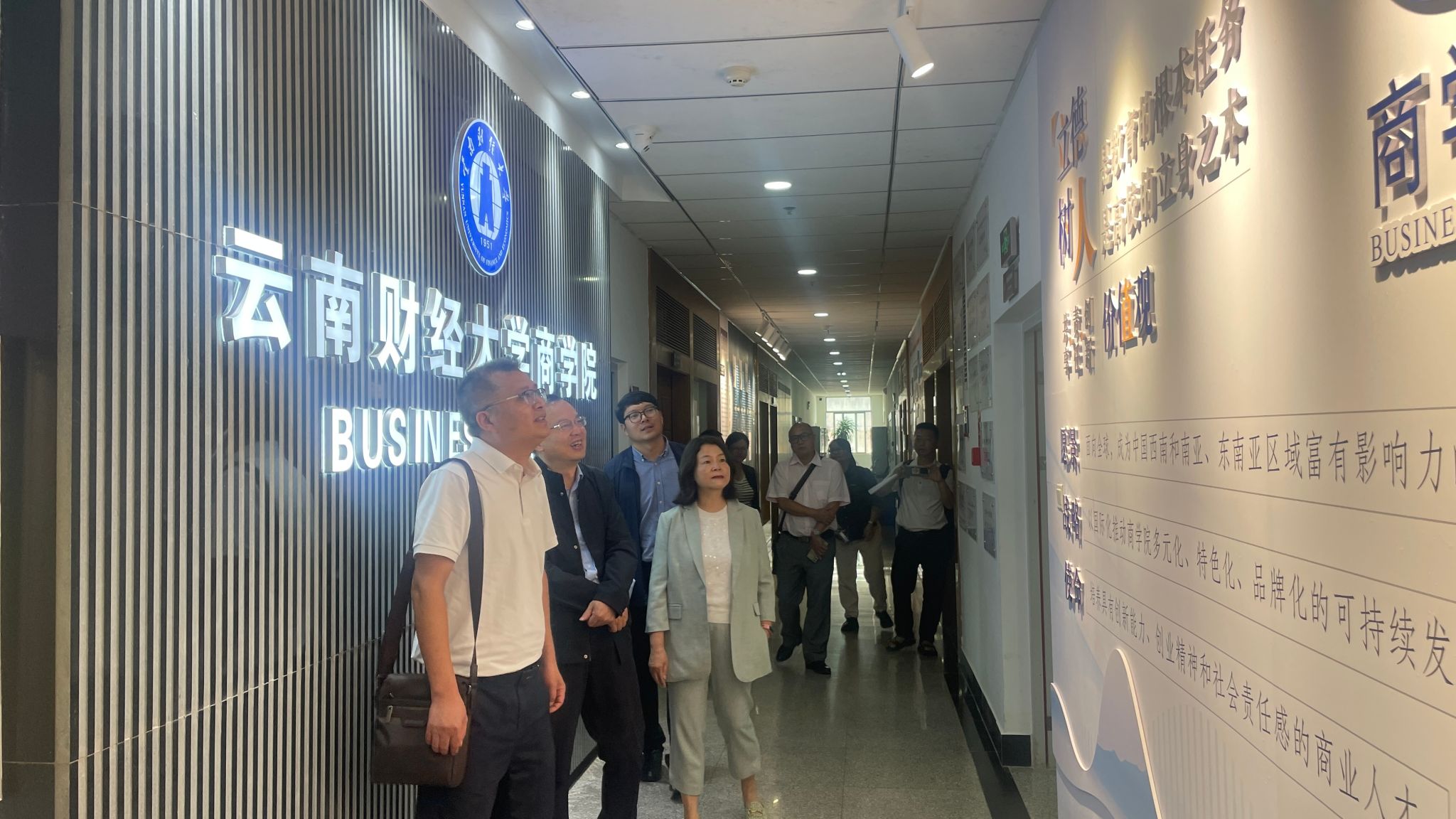 7月1日下午,由百色学院工商管理学院党委书记戴俊带队、人文管理学院副院长欧阳天治、人文管理学院党委副书记翟淑娟、工商管理学院组织专员赵小丹、学生支部书记贾娴、实验室主任熊保安、副教授甘智文一行七人组成调研组到商学院交流访问。