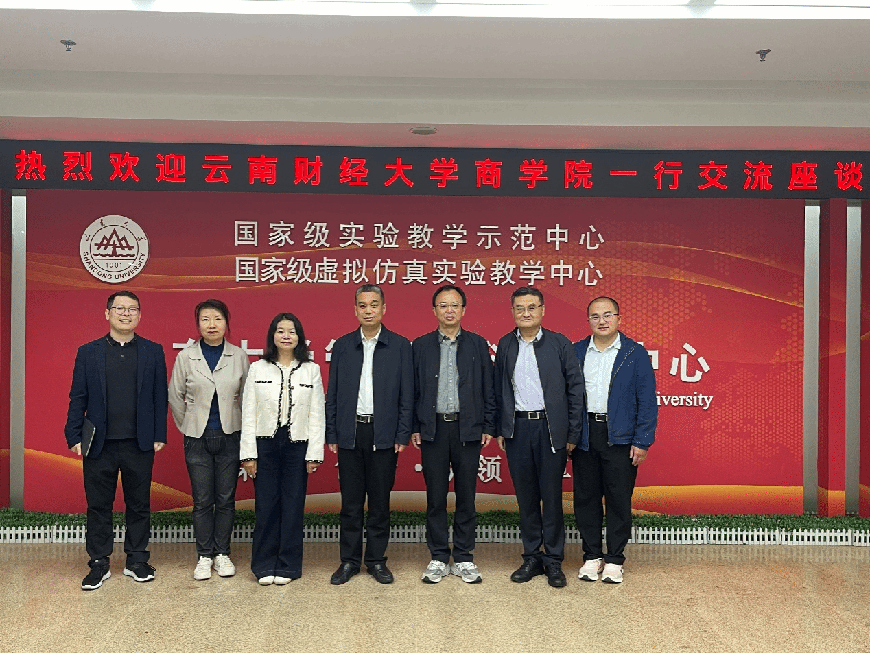交流期间,考察团重点走访了山东大学管理学科实验中心。该中心自2001年正式成立以来,已成功建设为国家级实验教学示范中心、国家级虚拟仿真实验教学中心,其打造的实验教学体系更三度荣获国家级教学成果奖二等奖。这种集教学、科研与创新创业于一体的综合平台建设模式,为商学院数字化实验室的规划升级提供了清晰借鉴与实践参考。