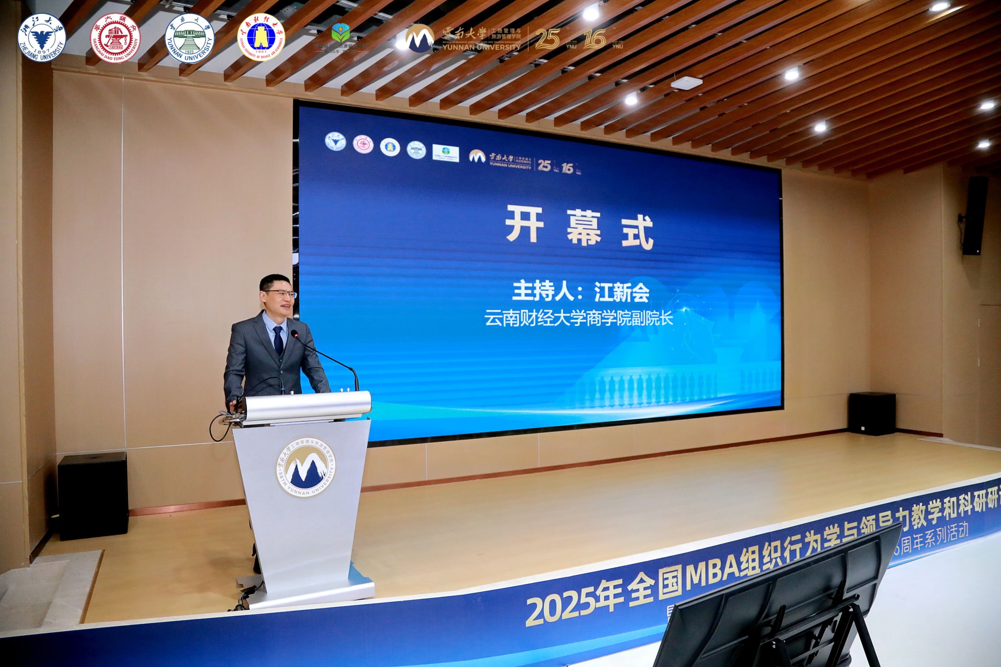开幕式上,云南大学副校长吴涧、云南财经大学副校长颜明、云南大学工商管理与旅游管理学院院长赵书虹、全国MBA教指委秘书处办公室主任王萍先后致辞,会议联合主席、浙江大学管理学院院长谢小云介绍大会筹备情况与核心议程。开幕式由云南财经大学商学院副院长江新会主持。