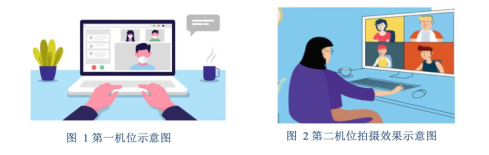 (二)考生需要准备可以支撑“双机位”运行的硬件,即需要两部带摄像头的设备及附件,包括电脑、手机、手机支架等。两个机位设备即电脑和手机摄像头像素不低于标清720P(720*1280)。面试时,1台笔记本电脑或台式机或手机(具备音、视频输入、输出功能),用于面试设备,作为主机位。1部手机或笔记本电脑或台式机或PAD等平板设备(须带有摄像头),用于监控面试环境的设备,作为辅机位。设备具体摆放要求如下:
