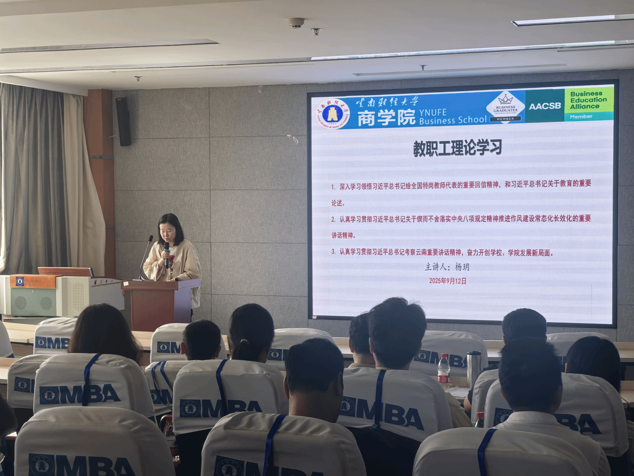 为深入学习贯彻习近平总书记重要讲话精神,提高教职工政治理论素养,9月12日,商学院在南院逸夫楼410报告厅开展9月教职工理论学习。商学院党委书记王敏主持,商学院党委委员杨玥领学,商学院全体教职工参会。