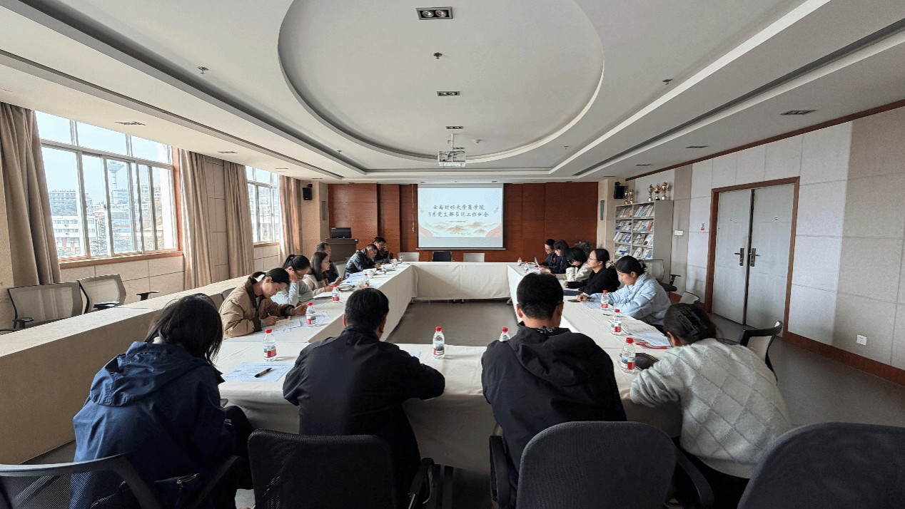 3月6日上午,商学院党委在南院逸夫楼521会议室召开2026年3月党支部书记工作例会。会议由商学院党委书记王敏主持,党委副书记兼纪委书记饶篁以及各党支部书记参加。
