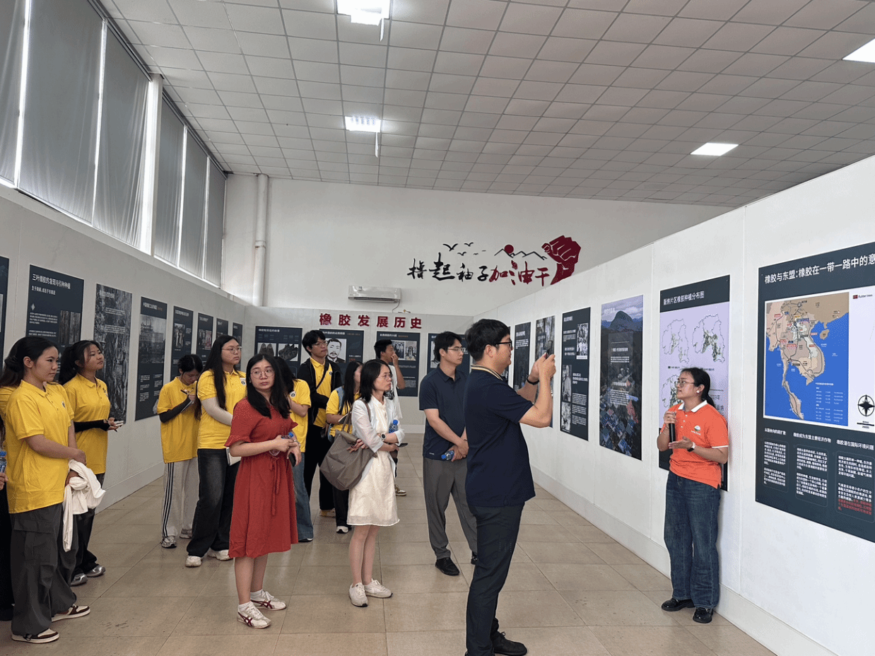 在田野橡胶集团的调研中,商学院调研团了解到通过合作共建,橡胶企业焕发新活力。调研团了解到企业如何变废为宝:污水循环处理项目让废水得到资源化利用,而橡胶乳清提取物甚至成为护肤新原料。从自动化升级到电商拓展,田野橡胶正努力向价值链高端攀升,展现边疆产业的绿色转型之路。