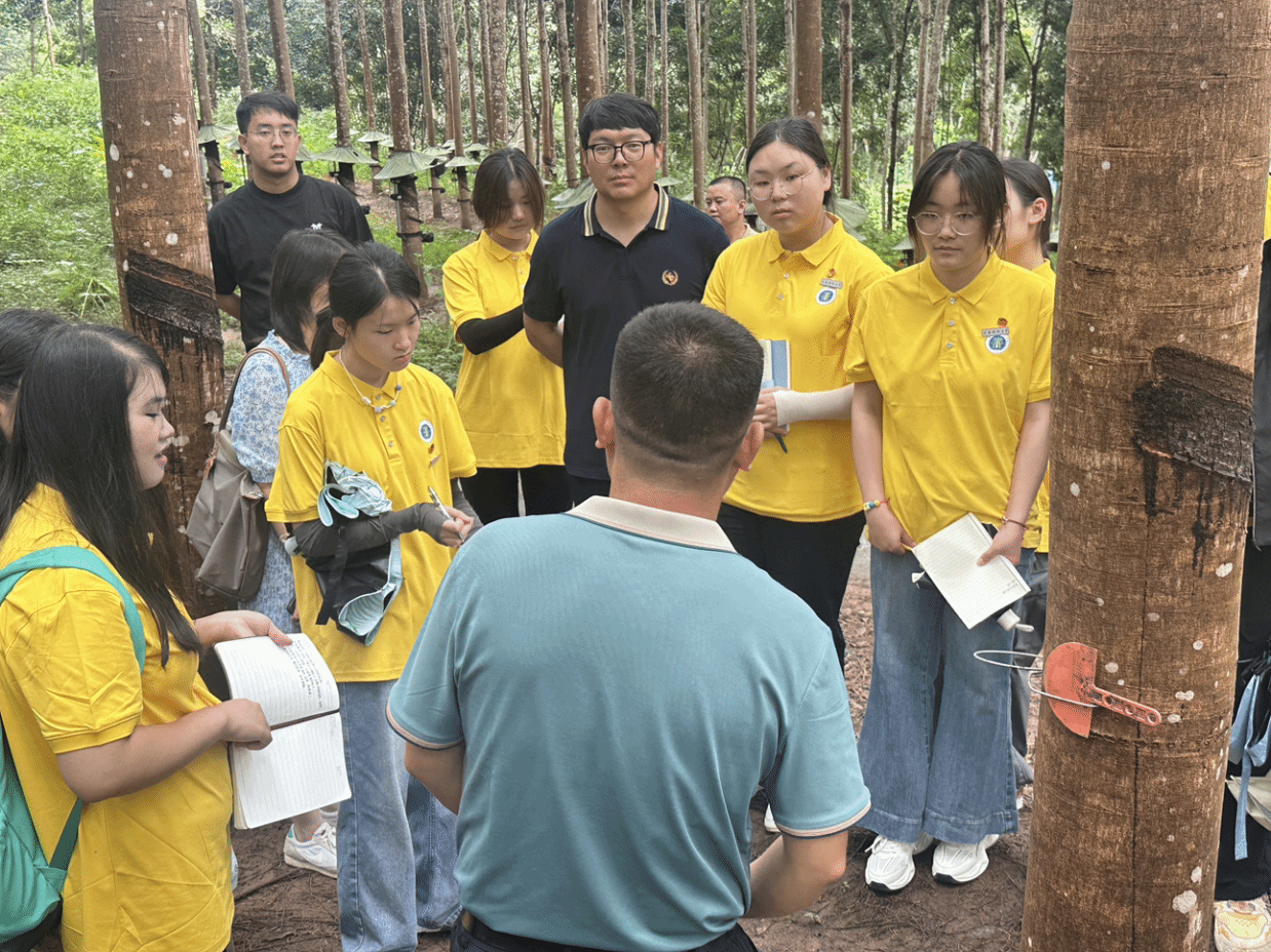 7月14日,团队首站走进勐腊县农垦集团,探访天然橡胶全产业链创新区建设。在集团展厅,成员了解到企业历经兵团建设、知青岁月、改革开放等历史阶段,逐步发展为集医疗教育、扶贫开发于一体的民生标杆企业。