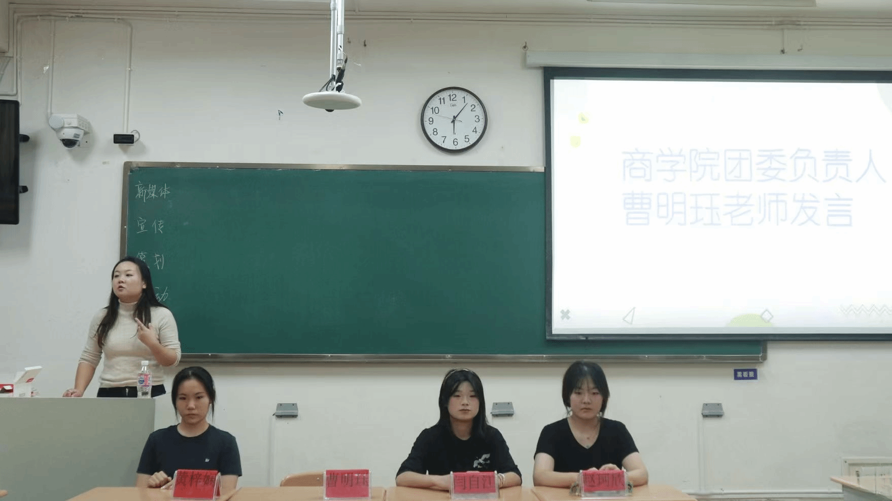 (图为商学院团委负责人曹明珏老师发言)