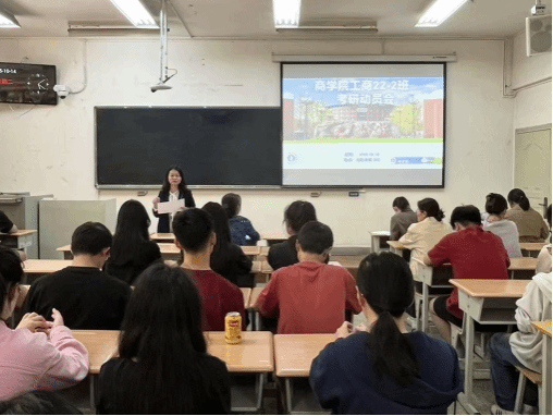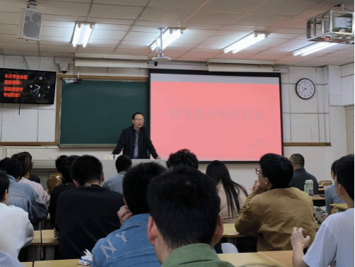 自10月11日起,学院开展了多维度、多轮次、多形式的本科生考研动员工作。党政领导、系主任、学业导师、辅导员、班主任、党支部书记等教职工群体发挥优势,进课堂、进班级、进支部、进宿舍开展政策宣讲,鼓励和指导学生树立升学目标。同时,学院邀请国际工商学院副院长刘丽芳为我院学生召开国际商务专硕项目招生宣讲会。