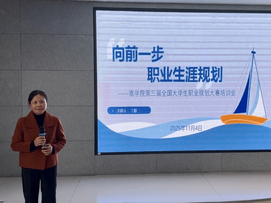 2025年11月4日,云南财经大学商学院职业规划大赛赛前培训会于逸夫楼410会议室成功举办。本次培训会由丁蔚老师主讲,商学院陈舒旸老师主持,全院80余名参赛学生参加。
