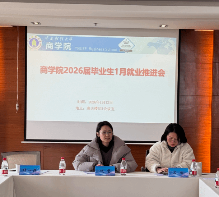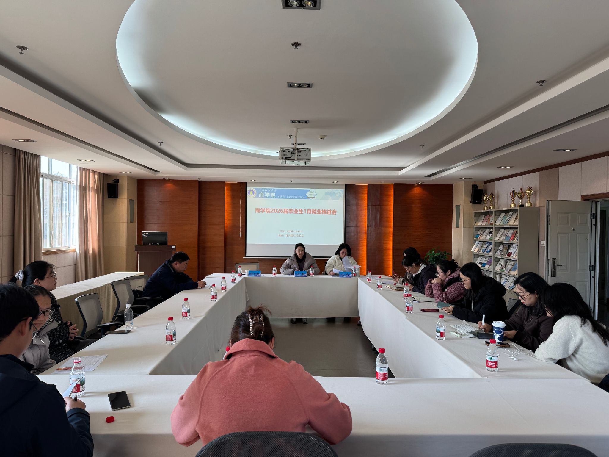 为在寒假期间扎实推进学院2026届毕业生就业工作,抓住窗口期,促进毕业生高质量充分就业。1月12日,商学院在逸夫楼521会议室召开2026届毕业生1月就业推进会。学院党委副书记饶篁主持会议,学生科科长文欢、全体辅导员及2026届毕业班班主任参会。